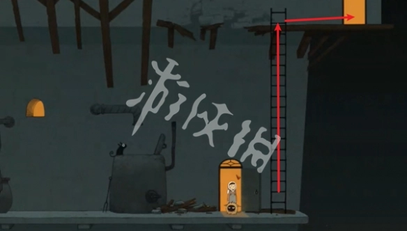 8、操控小女孩,移动到门边并将门打开,随后两人一同爬上梯子,经由右上方的门离开。