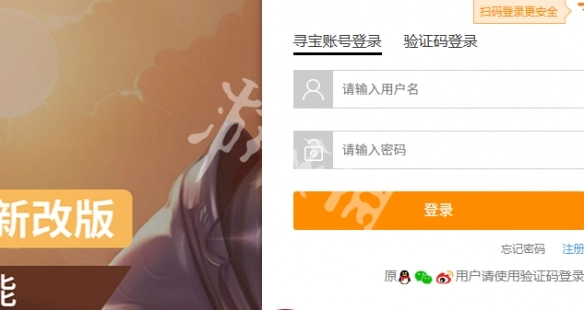 3、跳转至登录界面后,可通过寻宝账号、验证码或完美通行证这三种方式中的任意一种进行登录。