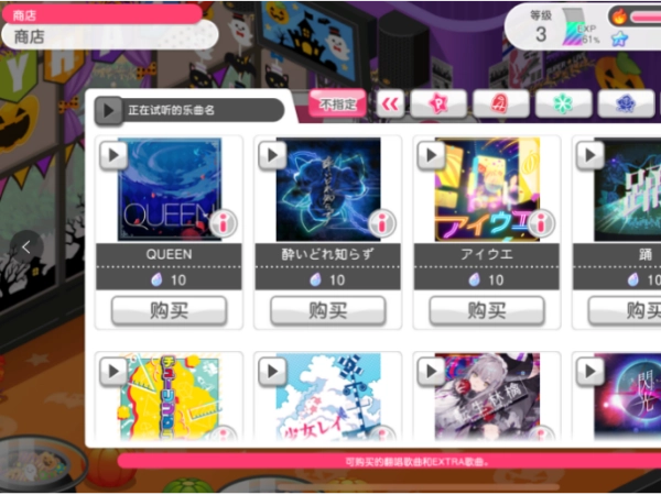 3、挑选自己心仪的歌曲,支付相应货币即可完成购买。