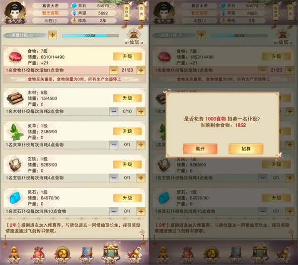 里面有两个功能是我们现在立刻能用到关于道童的,炼丹房,道童居
