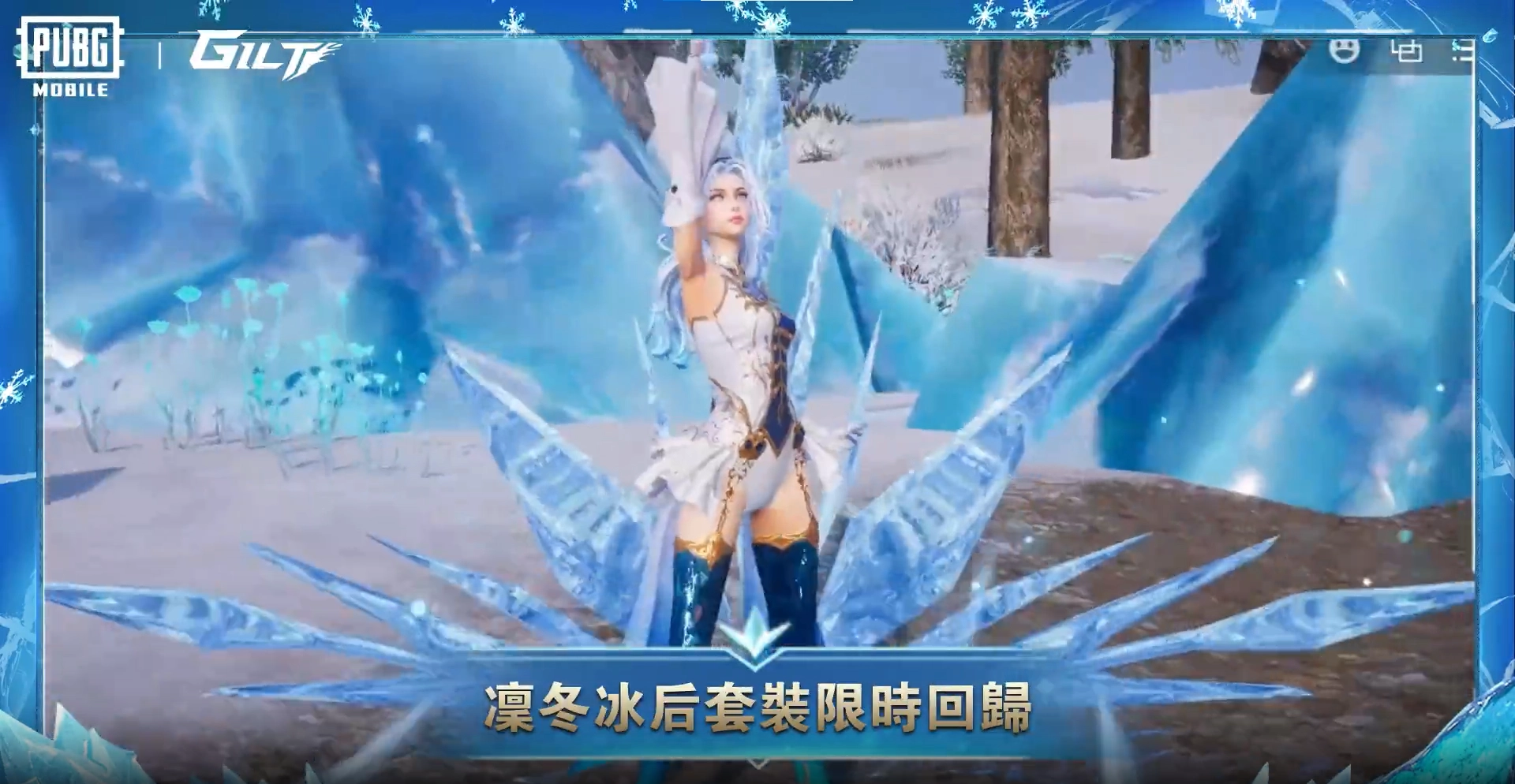 ▲人气鎏金套装凛冬冰后重磅回归!还有可升级水晶冰刺-UMP45,快来解锁你心仪的奖励吧~