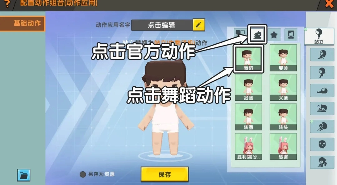 之后点击官方动作,找到一个跳舞的动作: