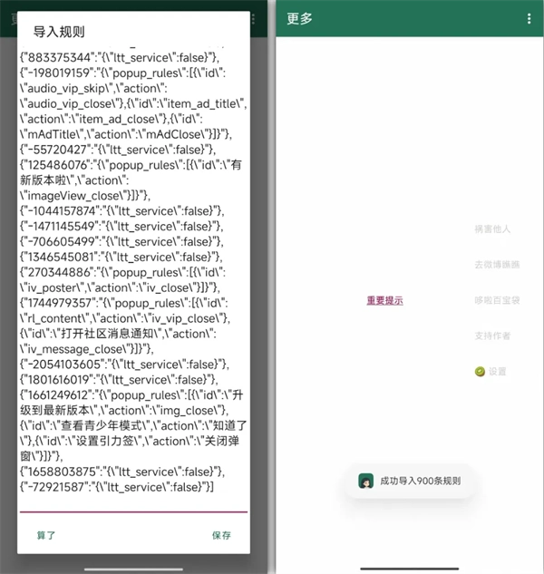 接下来的操作十分简便,只需将刚才复制的规则粘贴进来,然后点击保存,就能完成规则导入。