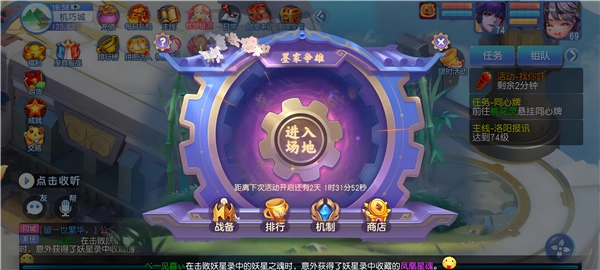 英雄大会:入场后,玩家将被随机划分至青龙、白虎两大阵营。待活动准备时间结束,便正式进入PK环节。在场景里,来自不同阵营的单人或队伍将通过匹配展开战斗。活动奖励通常为二级宝石,亦或是兽魂兽铃,此外大概还会有1800金左右。