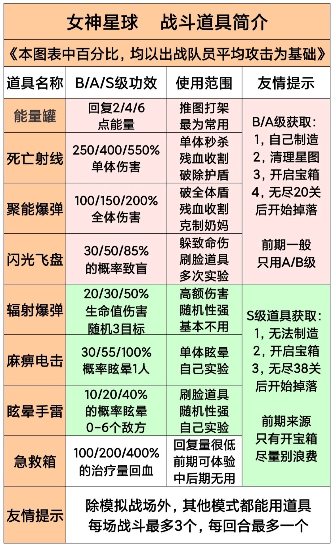 前期最好用,且常用的道具:能量罐/死亡射线/聚能爆弹/闪光飞盘。