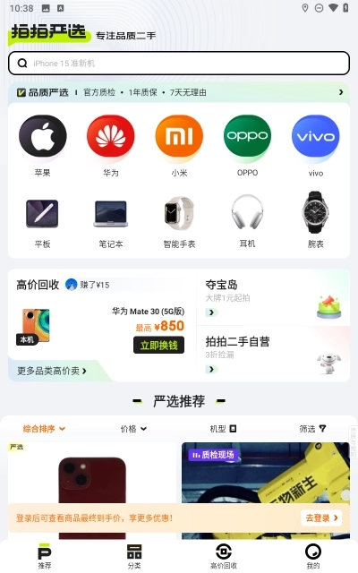 拍拍严选是一款二手交易平台软件,目前是京东旗下的。支持二手商品的回收购买等,能让你的闲置物品更大程度的完成置换,有需要的用户们可以下载使用。