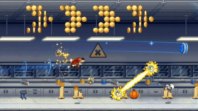 2、扮演 Barry,闯入一间秘密实验室,从邪恶科学家们手中夺取实验性的喷射飞行器。升空后,只需轻触屏幕即可上升,释放即可下降,飞行过程中倾泻子弹、泡泡弹和彩虹弹,并发射激光,不断获取更高得分!