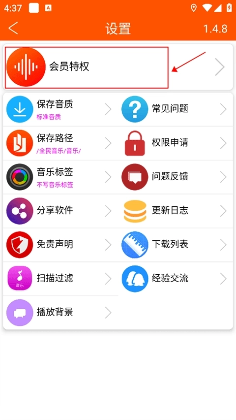 2、然后在设置界面点击会员特权
