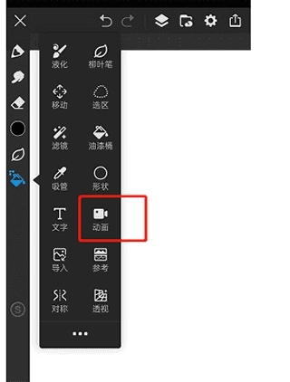第二步:点击左侧工具栏中的【动画】工具,如果没在工具栏里面,可以点一下四个小正方形的图标,会把所有的工具显示出来,如图所示: