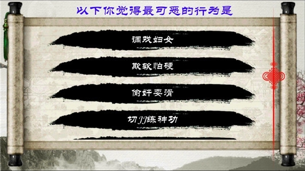 【1】你希望自己在武侠小说中的出身是?(注:本次选项中不同的选项会有不同的人物外形)