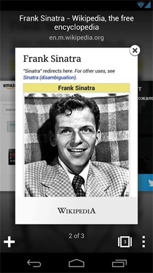 可打开任意多个标签页并在标签页之间快速切换。在手机上,您可以像摊开一副纸牌一样浏览多个标签页。而在平板电脑上,您可以滑动边缘来切换标签页。