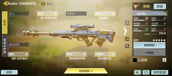 对于我这个狙击老玩家而言我认为koshka也是很好的选择,他拥有跟q33一样的致死面积,极高的机动性和开镜时间只不过它的射击间隔有点长,只要多加适应,koshka是很多人的不二之选,特别是打半开镜,k狙拥有极高的精准度。配件如下。