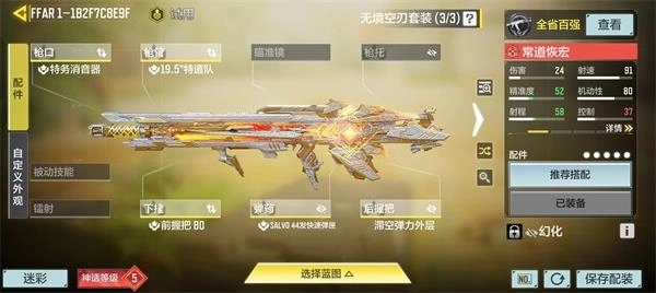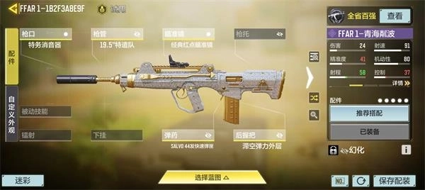作为一把高射速步枪ffar在近距离拥有极高的统治力,而且同为高射速步枪的m13在ffa的统治下也失去了过往的辉煌,所以我们再配装中可以适当提高其在中距离的作战能力使其能应对更多情况,配装如下。