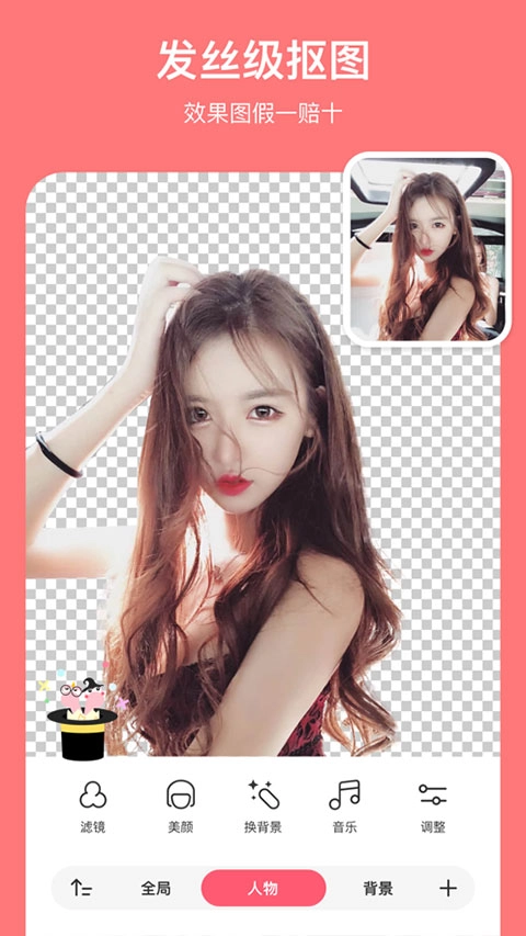 1、一键就能进行抠图,可以在平台上快速的将照片中的人物抠图下来;