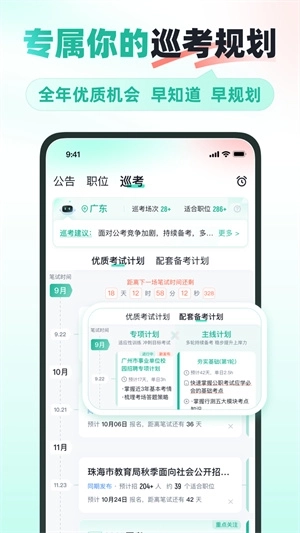 人性化职位定制和动态提醒,微信、APP、PC多终端及时送达,不错过任何可能适合的好机会,及时掌握每场考试动态。
