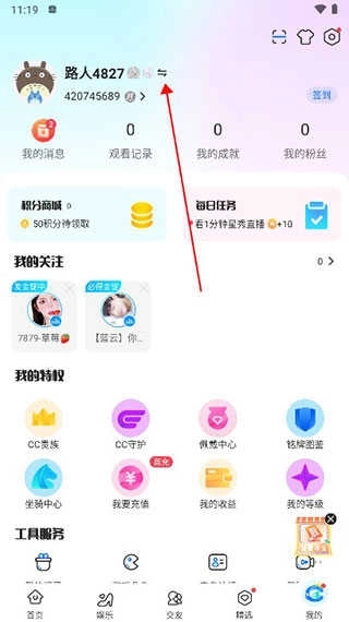 如何在CC直播上切换账号?