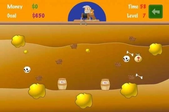 1、游戏操作非常简单,在钩子摇摆的过程中,瞄准金子,点击屏幕时即会释放出钩子去抓取金子。