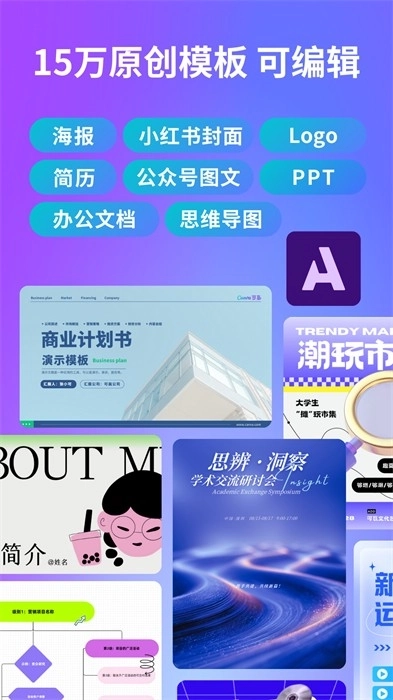 15万+原创模板,海报/简历/封面/Logo/PPT/朋友圈配图/电商主图/节日模板,应有尽有。