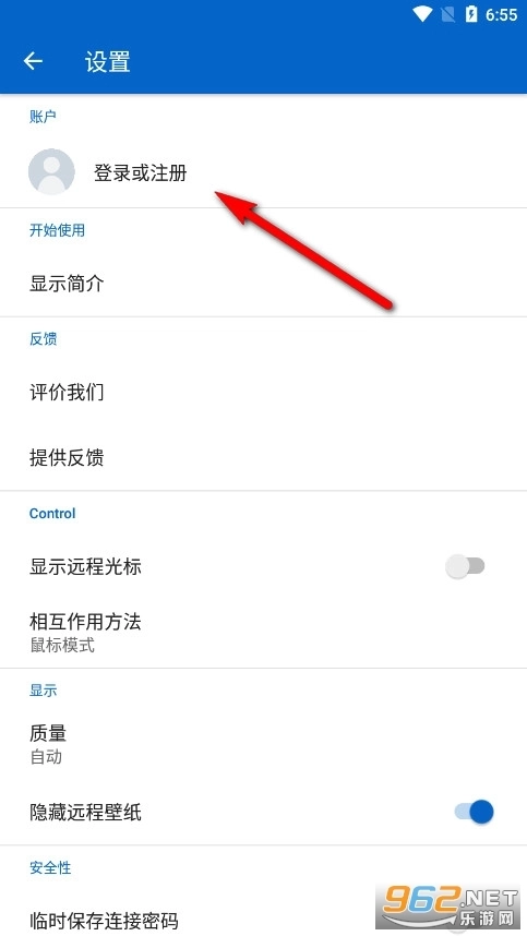 6、点击“登录或注册”选项
