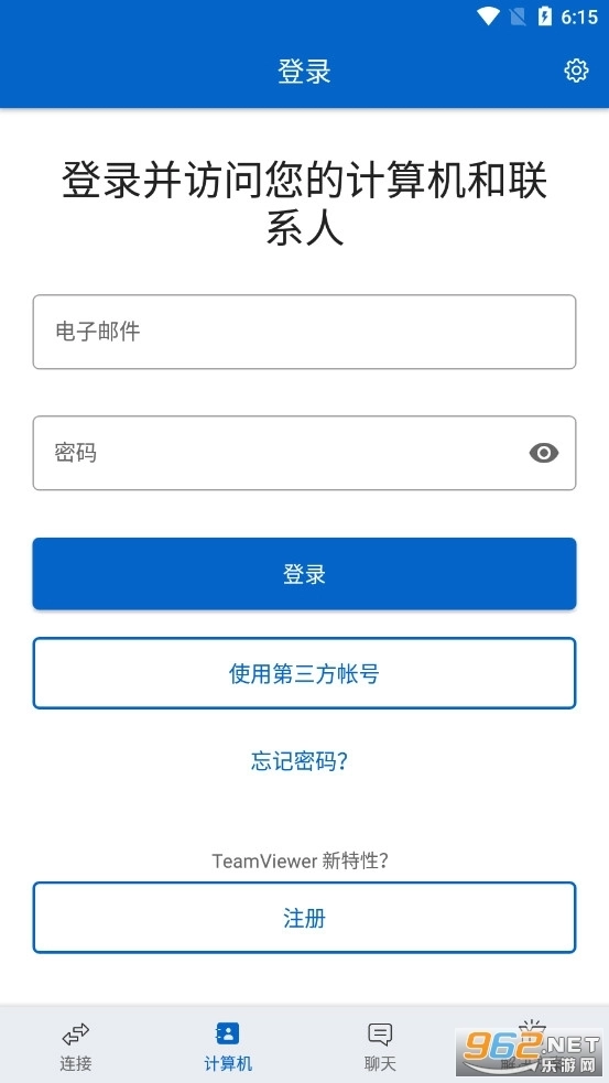 7、原有已注册老用户,直接输入TeamViewer所绑定 邮箱 +密码或是第三方账号登录,新用户则需要注册