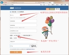 4、免费注册链接会打开如下图所示的“填写注册信息”窗口,按照提示填写自己的姓名和密码等注册资料。