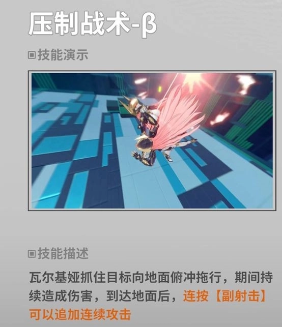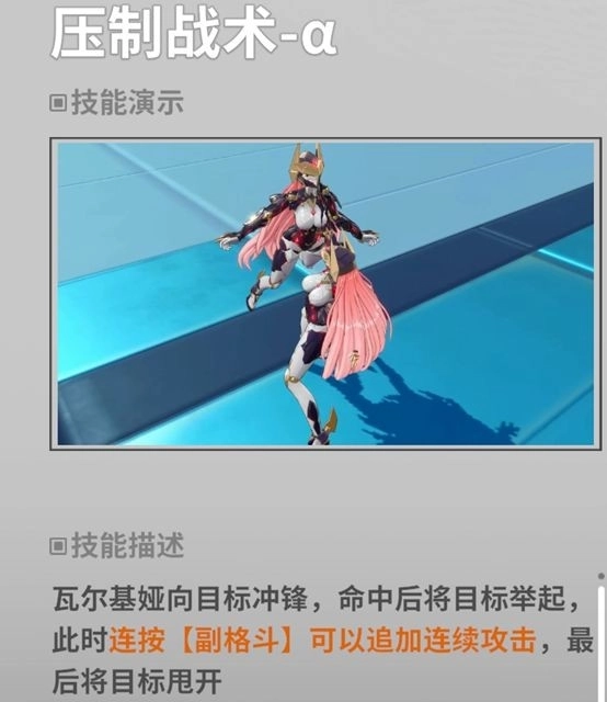 举高高+砸地板(天赋1解锁派生)分为两段,第一段先飞起来把敌人举高高,第二段砸地板,砸地板过程中罚站,但可以利用上升取消的机制在举高高的过程中把砸地板环节取消,接拖地板派生。