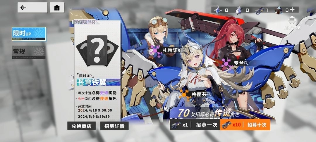 第一点卡池:70抽小保底,140抽大保底,一抽160,分常驻卷和限定卷。