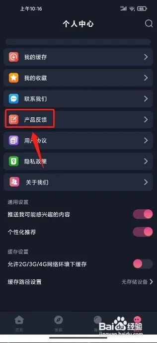 第二步:进入个人中心,点击【产品反馈】。