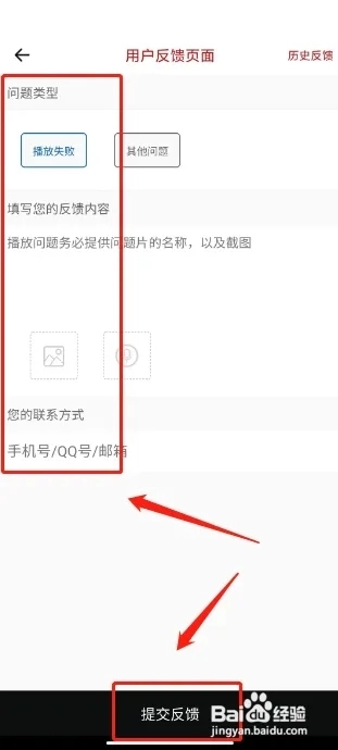 第四步:进入用户反馈页面,选择问题类型、填写您的反馈内容、上传图片、联系方式,点击【提交反馈】。