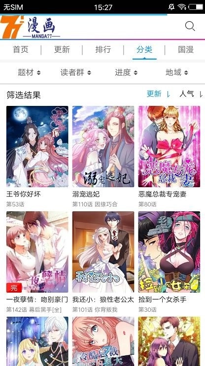 77漫画是一款漫画阅读应用程序,其中的漫画大多属于女生喜爱的类型。它的分类十分细致,漫画数量也颇为可观,完全不用担心会陷入无漫画可看的境地。