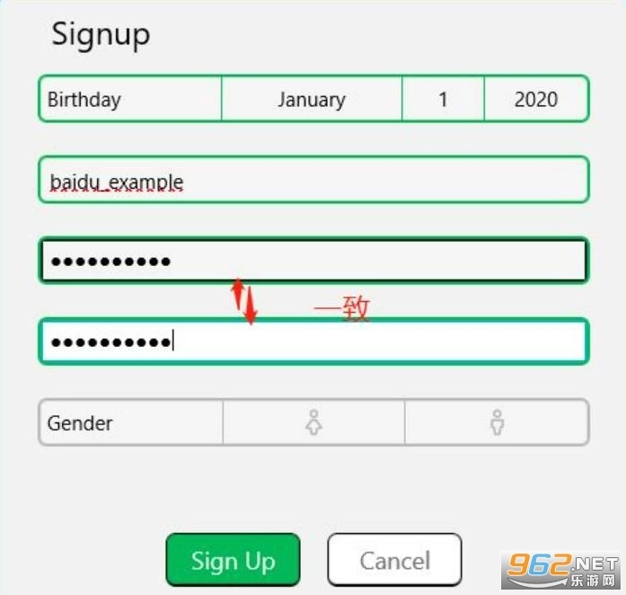 7、最后选择性别,然后点击“Sign Up”就可以注册成功了。