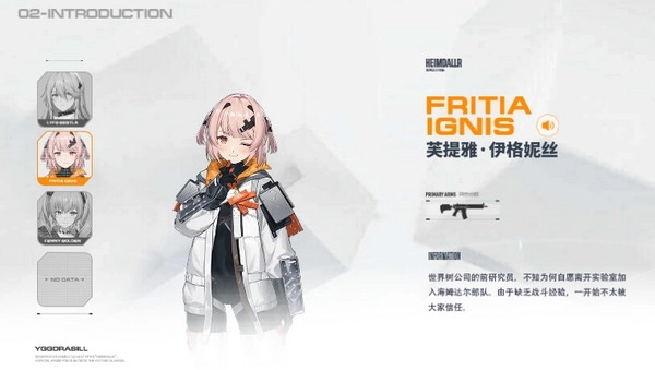 世界公司的前研究员,不知出于何种原因主动离开实验室,转而加入了海姆达尔部队。因其战斗经验匮乏,起初不太能获得大家的信任。