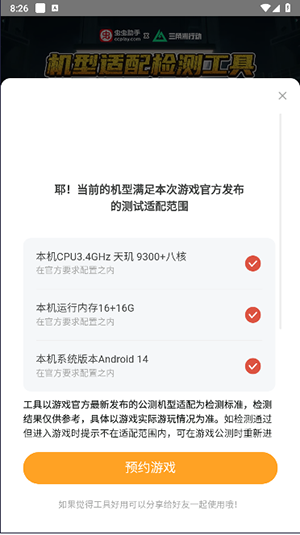 快速检测:用户能够迅速开展设备适配检测,知晓自身设备是否满足游戏要求。