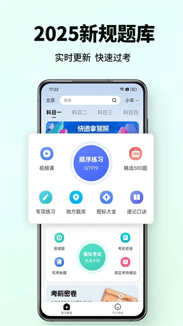 2025全新权威题库,打造一站式高效备考平台!这里有专业详尽解析、丰富多样练习以及高度真实模拟,为你量身定制专属学习路径,助你轻松拿下科目一到科目四!