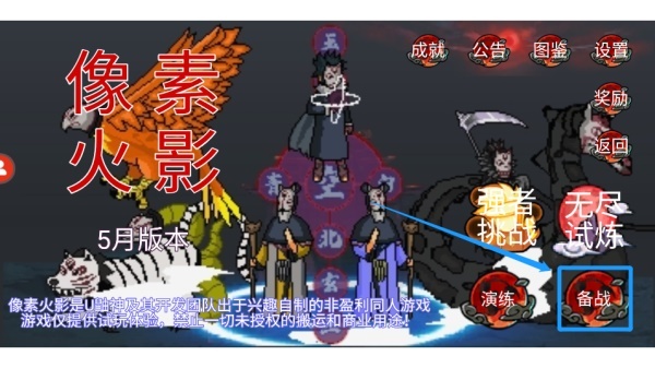 3、经典复古的像素风图形打造的各种帅气忍者,可以操控这些忍者来同其它动漫之中的角色进行格斗。