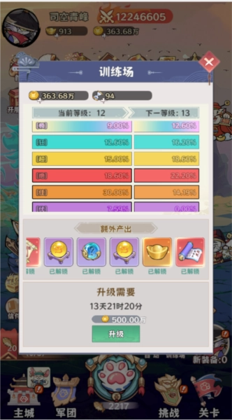 3、提升训练场等级,升级后获取高品质武器装备的几率将增加,效果颇为显著。