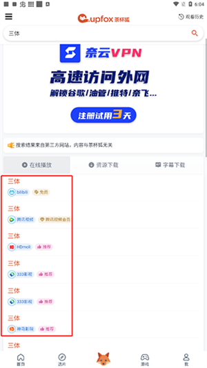 1、在本站下载安装并打开茶杯狐app,进入软件首页。