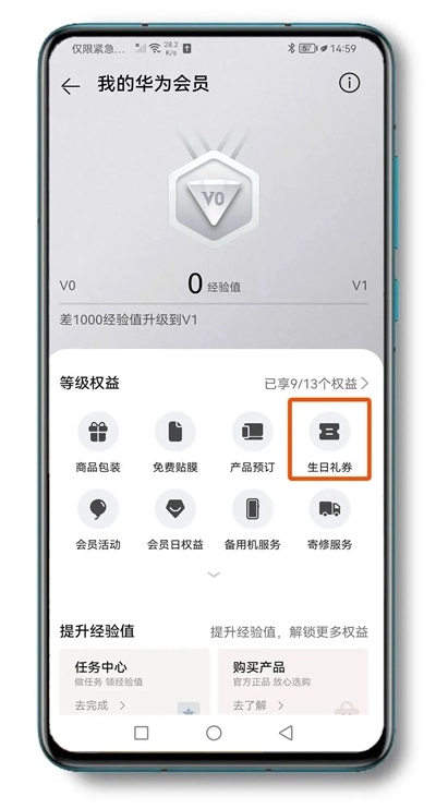 我的华为App如何领取免费生日礼物