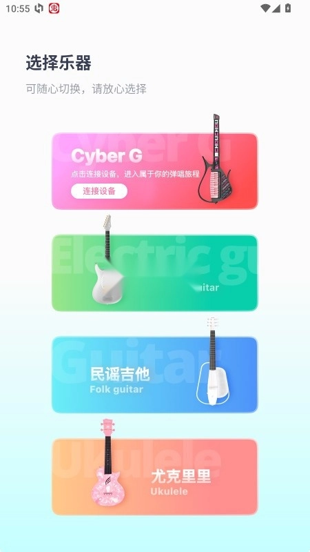1、打开软件,在软件界面里挑选自己想要学习的乐器。