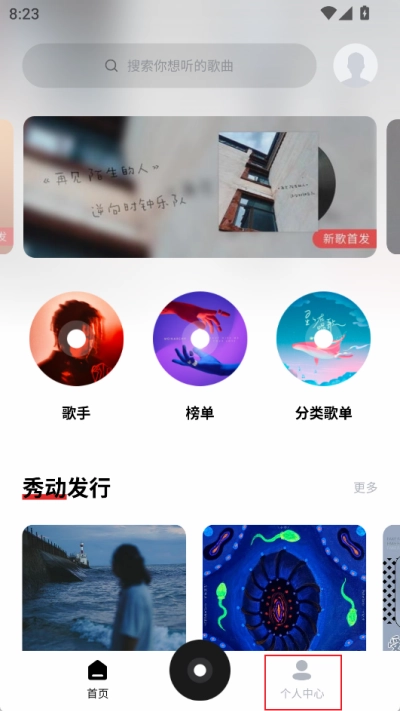 1、第一步,打开已准备好的千千音乐,进入软件界面后,点击右下角的【个人中心】选项。