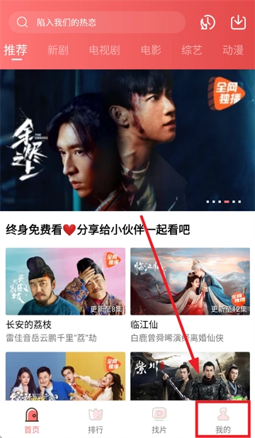 安装并打开多彩视频,进入首页后点击我的