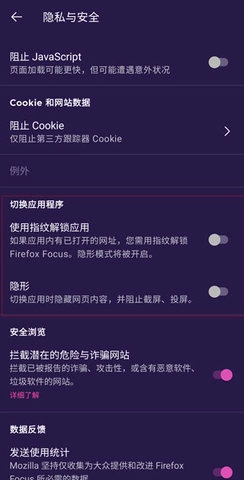 语音搜索优先:Firefox Focus 具备免输入语音检索功能,且搜索结果会自动开启隐私保护模式。