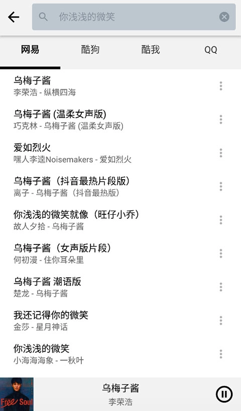4、你也能够直接在搜索框内输入想听歌曲的名称,随即展开搜索,届时全网多个版本的在线歌单任你挑选。