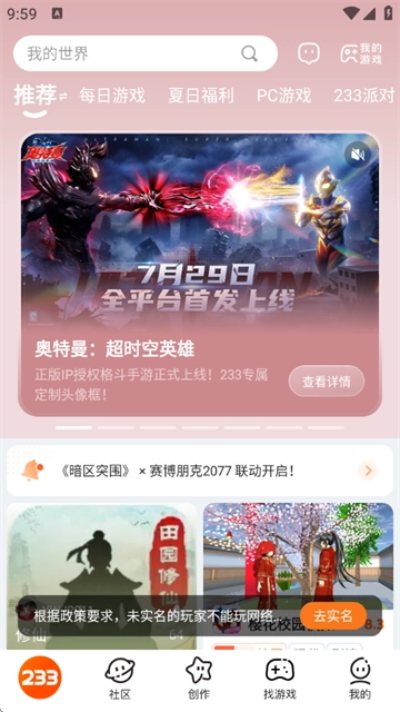 1、233乐园初次进入的玩家,需要完成实名认证;