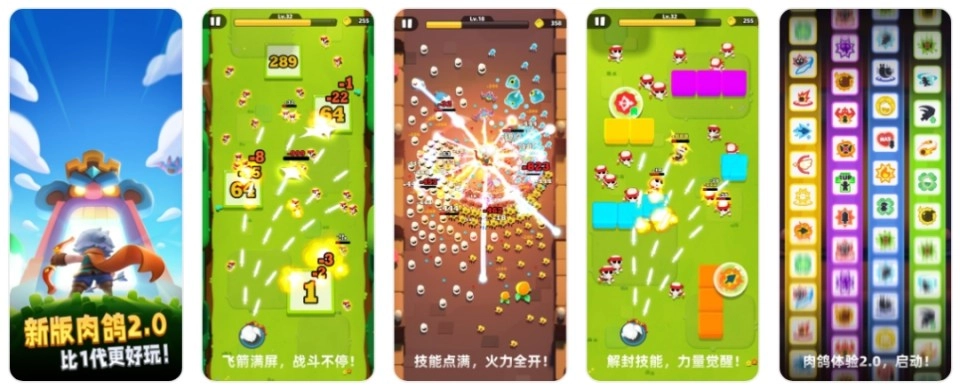 整体来看,与《弓箭传说》1代的选择场景相比,《弓箭传说2》增添了技能品质这一要素。技能品质按照绿、蓝、紫、橙的顺序依次提升,每次进行技能选择时,品质都会随机提升,玩家从而能获取更为强大的技能。