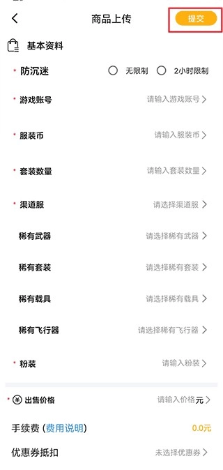 3、最后将商品基本资料、出售价格、实名认证等内容完善后,点击提交即可等待买家购买