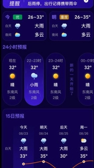 逐小时更新天气预报数据信息,精确获悉天气当下的状态信息。