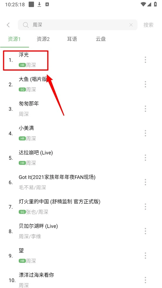 3、如图所示,结果包含多首歌曲,选择并点击你需要的歌曲进入。