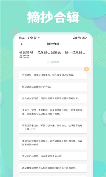 2、当用户挑选出自认为极为优美的摘抄文案后,可将它们全部录入摘抄合辑进行整合,从而领悟其中的精髓。