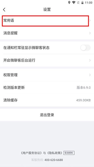 3、在设置窗口,单击常用语选项;